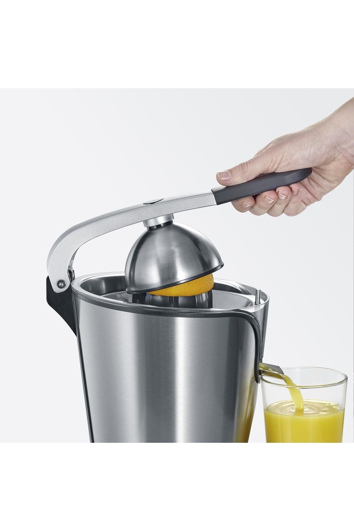 Tüm meyve çeşitleri için uygundur – bireysel posa kontrolü ile! Yüksek kaliteli paslanmaz çelik tasarımı ile CP 3544 narenciye presi sadece gerçek bir göz alıcı olmakla kalmaz, aynı zamanda sağlıklı ve ev yapımı meyve sularını kısa sürede hazırlamak için her şeyi sunar. Döküm alüminyumdan yapılmış sabit manivela kolu sayesinde, meyve suyu sıkmak hızlı, zahmetsiz ve temizdir. Kaldıraç kolunun esnek eklemi, son damlaya kadar optimum meyve suyu verimi sağlar - limonlar, portakallar, misket limonları, greyfurtlar, kan portakalları ve hatta narlar en iyi şekilde sıkılabilir. Posa düzenleyicili iki adet paslanmaz çelik elek sayesinde, meyve suyundaki posa içeriği de isteğe göre ayarlanabilmektedir. ve münferit parçalar bulaşık makinesine uygun olduğundan, temizlik de kesinlikle kolay ve zahmetsizdir