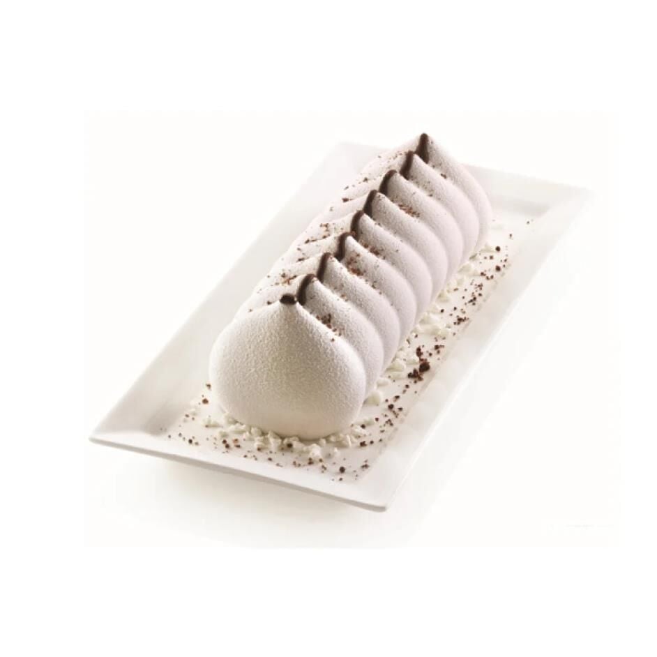 vMeringa: Silikomart’ın Meringa kalıbı kremamsı püsküllerden ilham alınarak yaratıldı. Porsiyonlamayı kolaylaştıran parçalı şekli sayesinde sevdiklerinizle paylaşabileceğiniz birçok tatlı hazırlamanıza olanak sağlayacak rafine ve zarif bir kalıp. Meringa kalıbı, 3Design serisinin bir ürünüdür ve tariflerinize hafif yuvarlak bir taban sağlayan devrim niteliğinde bir iç bordür ile donatılmıştır. Meringa semifreddo veya mousse olarak değil, aynı zamanda fırında pişen tatlılarda da mükemmel sonuç garantisi verir. Boyut: 90x250 h 75 mm Hacim: 1100 ml;