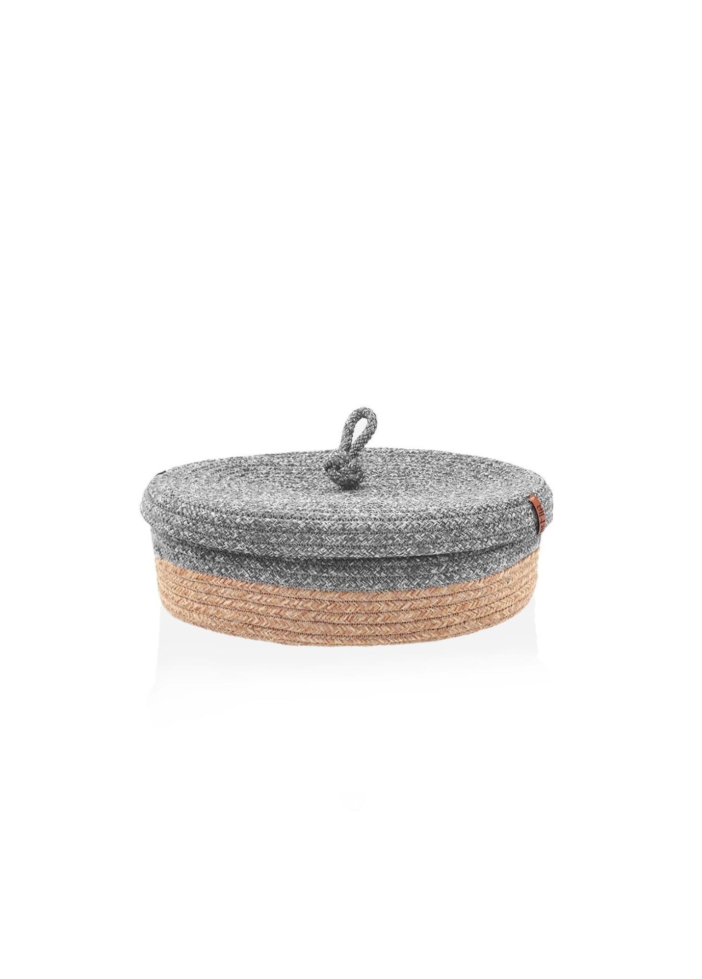 The Mia Jutte Kapaklı Oval Sepet Bambu Gri 35x24x12 cm