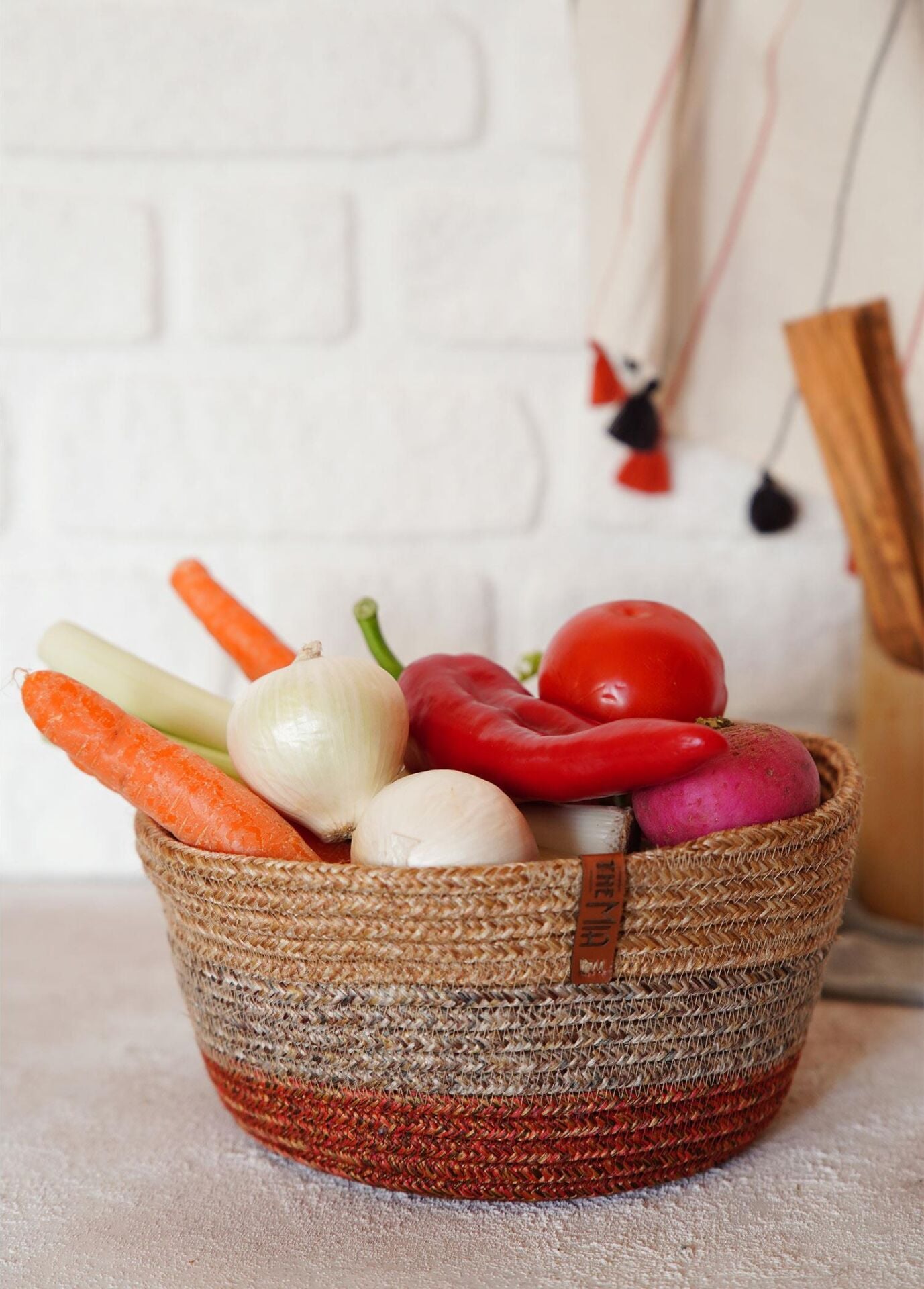 The Mia Jutte Yuvarlak Sepet Bambu Kiremit 20x13 cm