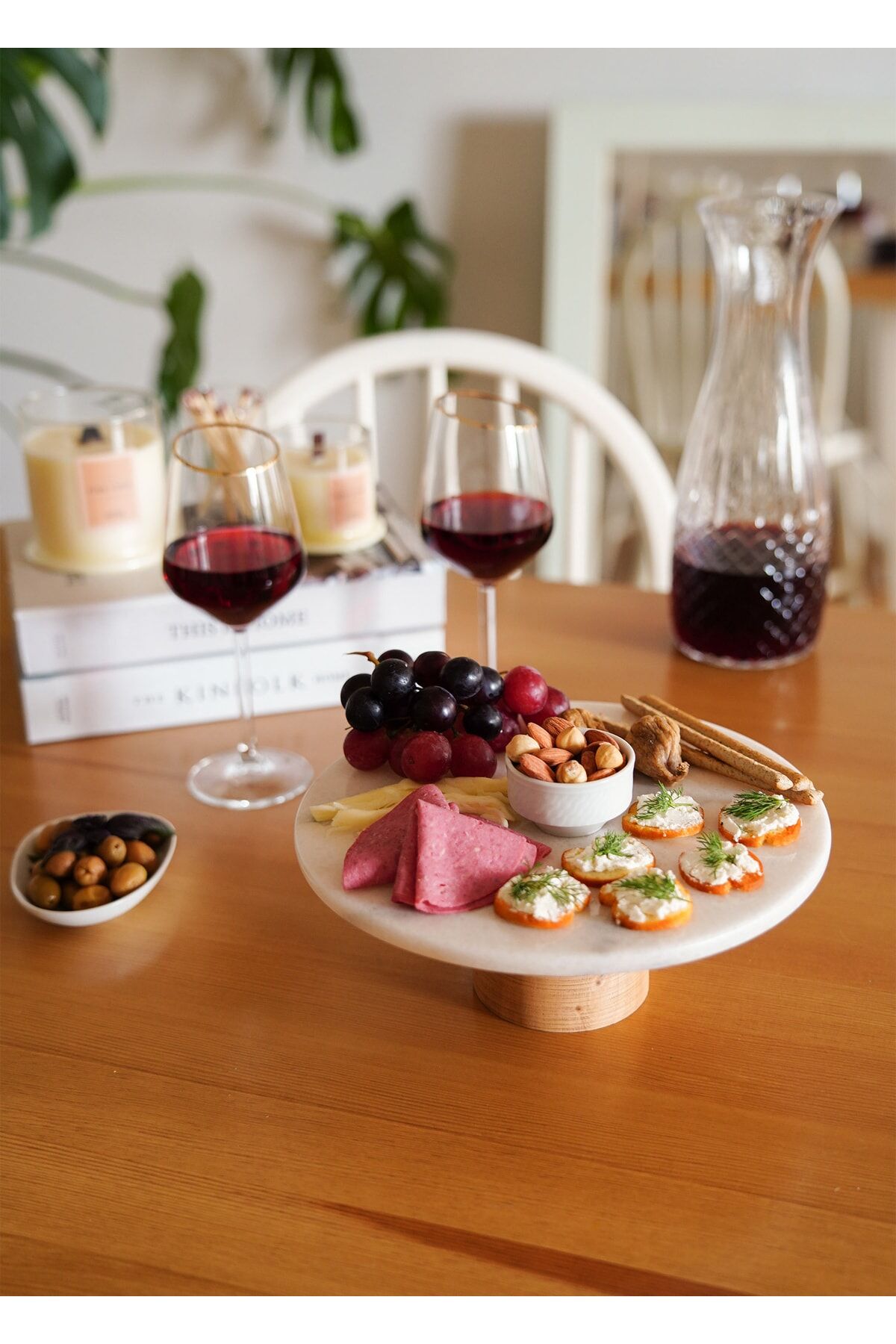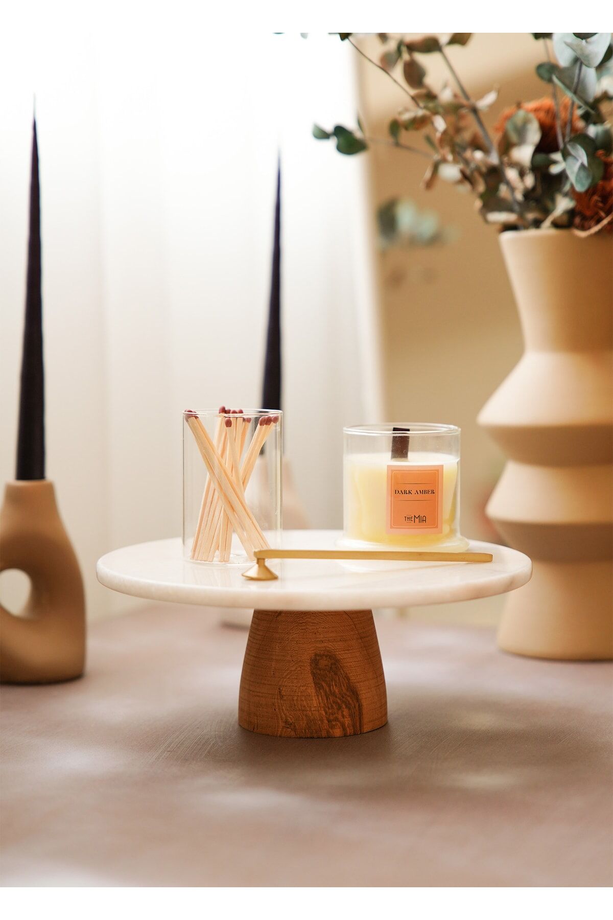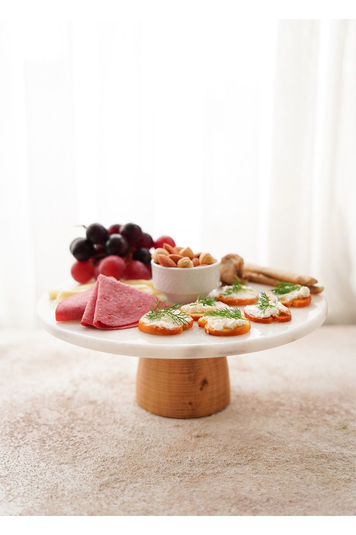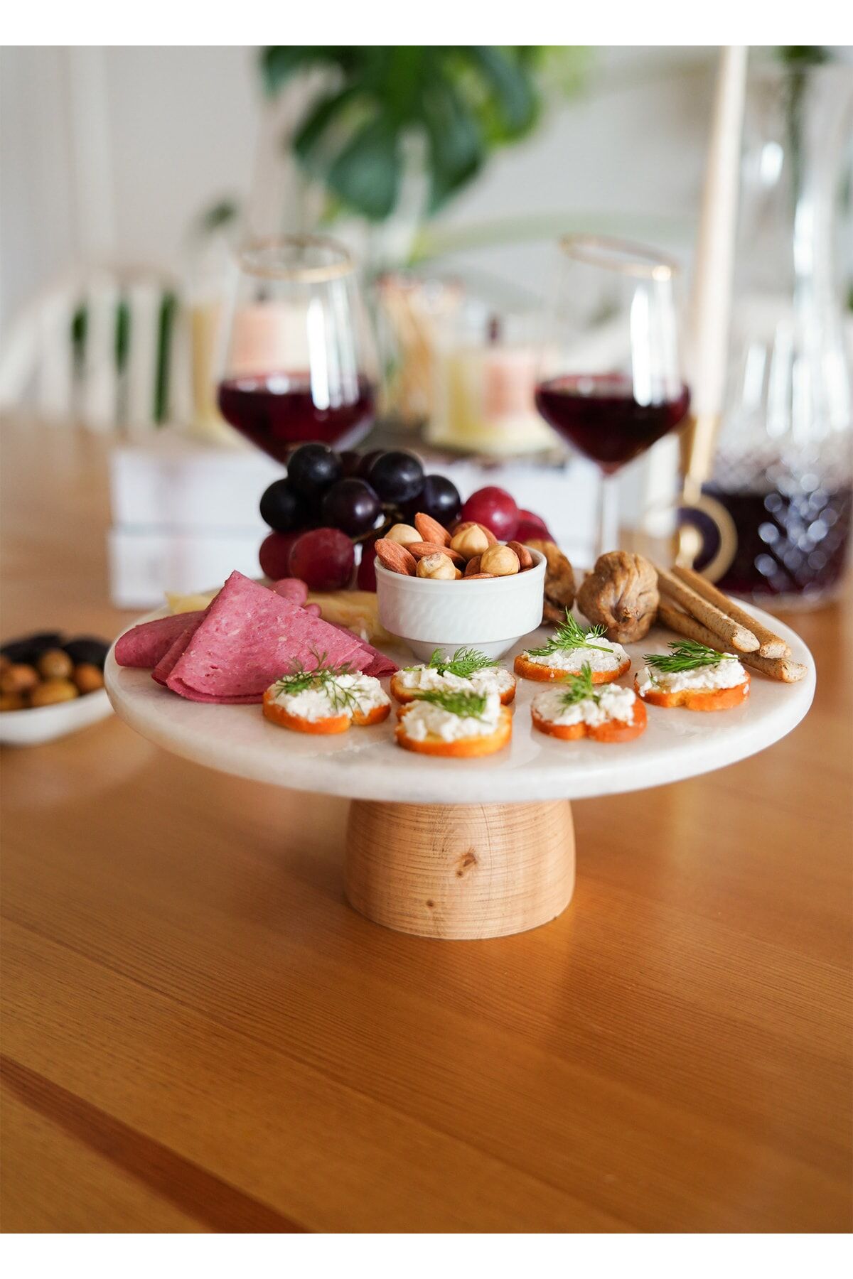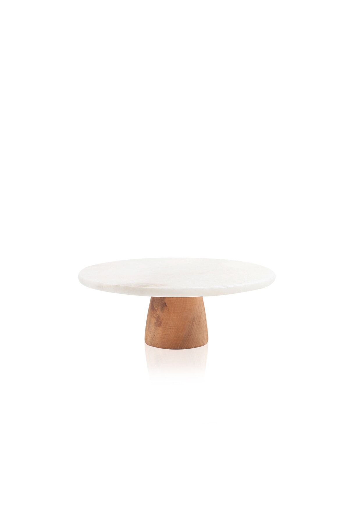 The Mia Marbre Mermer 25 cm Ahşap Ayaklı Beyaz Servis
