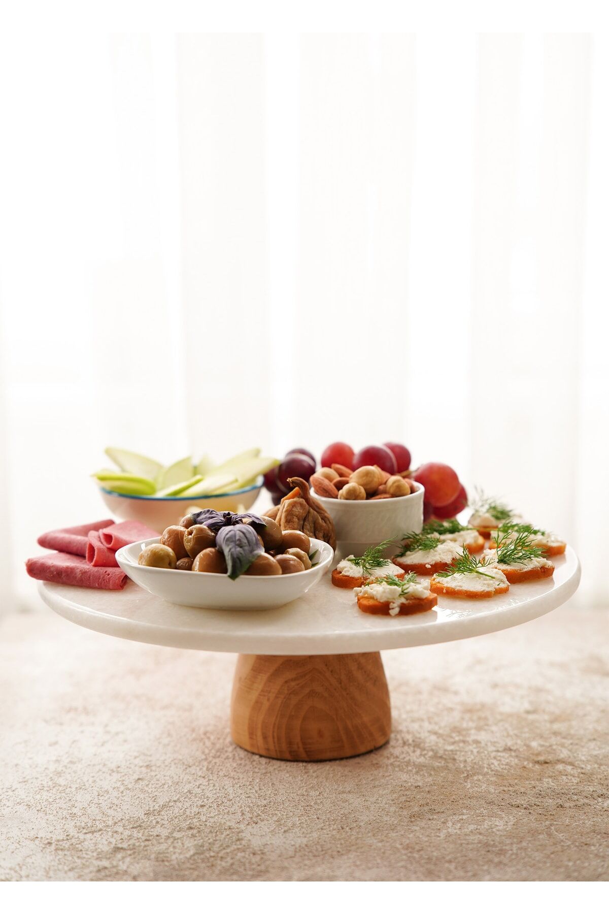 The Mia Marbre Mermer 28 cm Ahşap Ayaklı Beyaz Servis