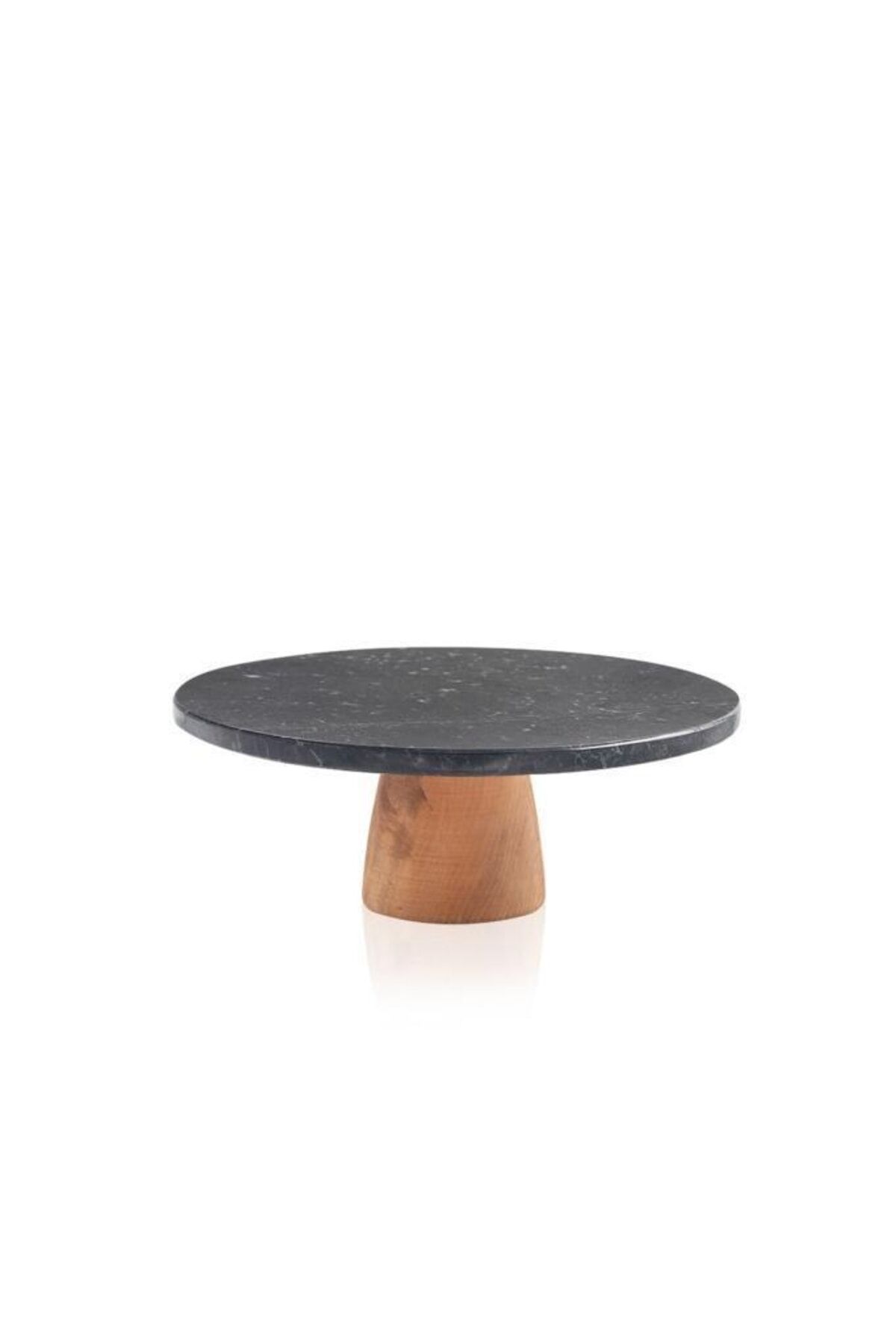 The Mia Marbre Mermer 28 cm Ahşap Ayaklı Siyah Servis