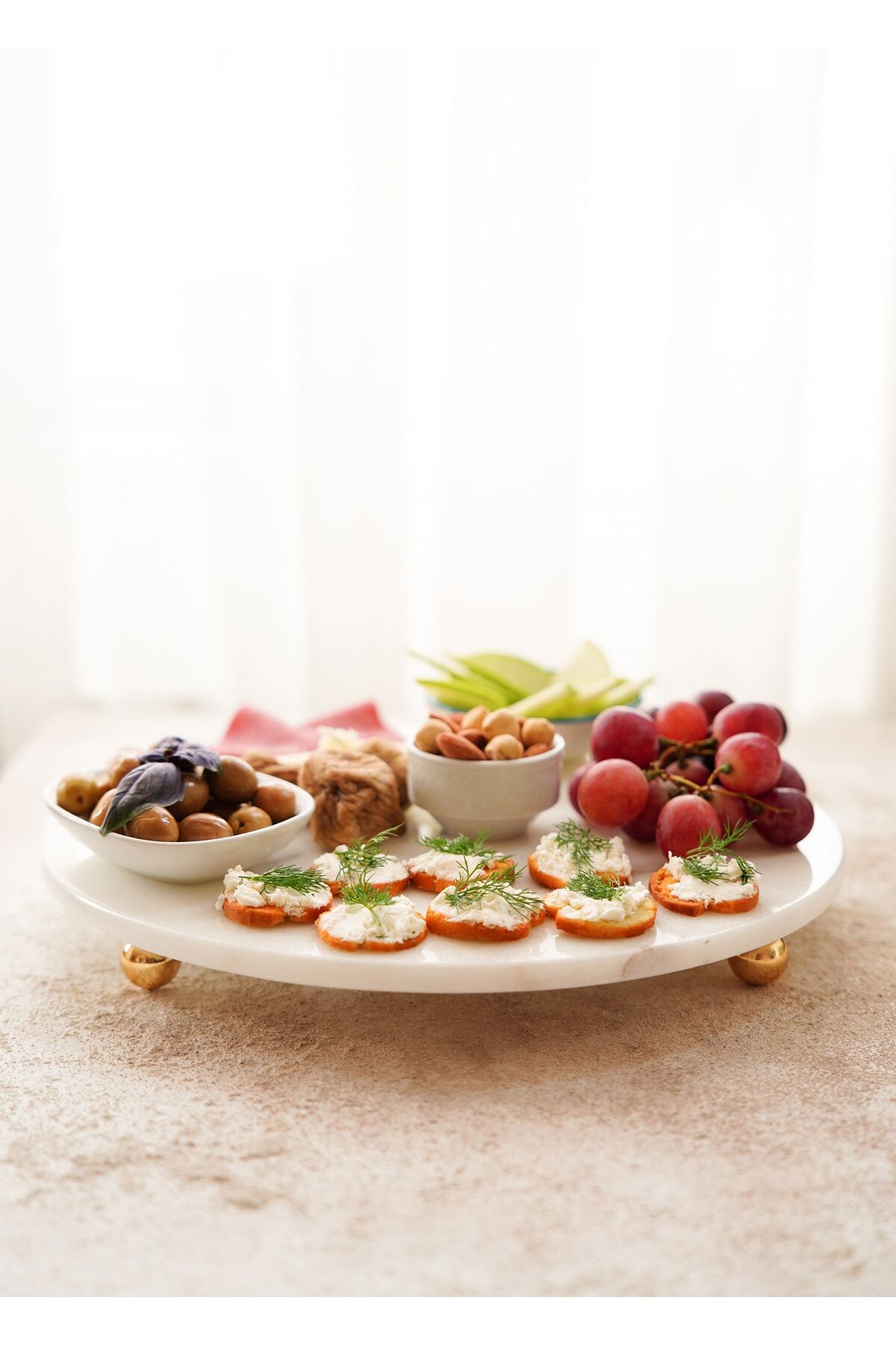 The Mia Marbre Mermer 30 cm Boncuk Ayaklı Beyaz Servis