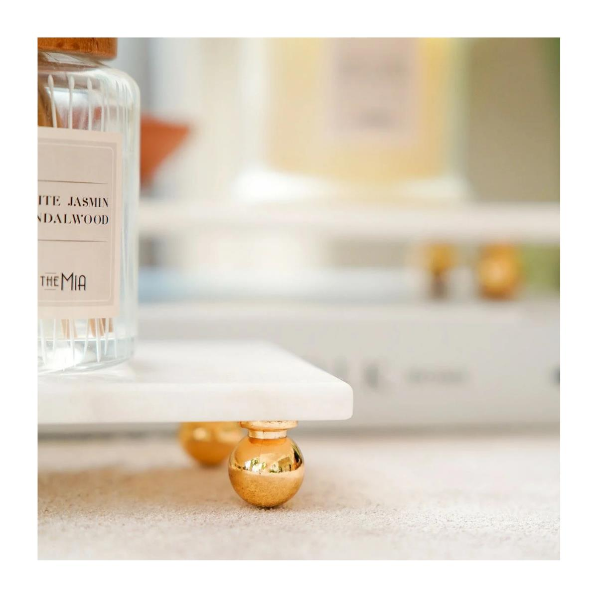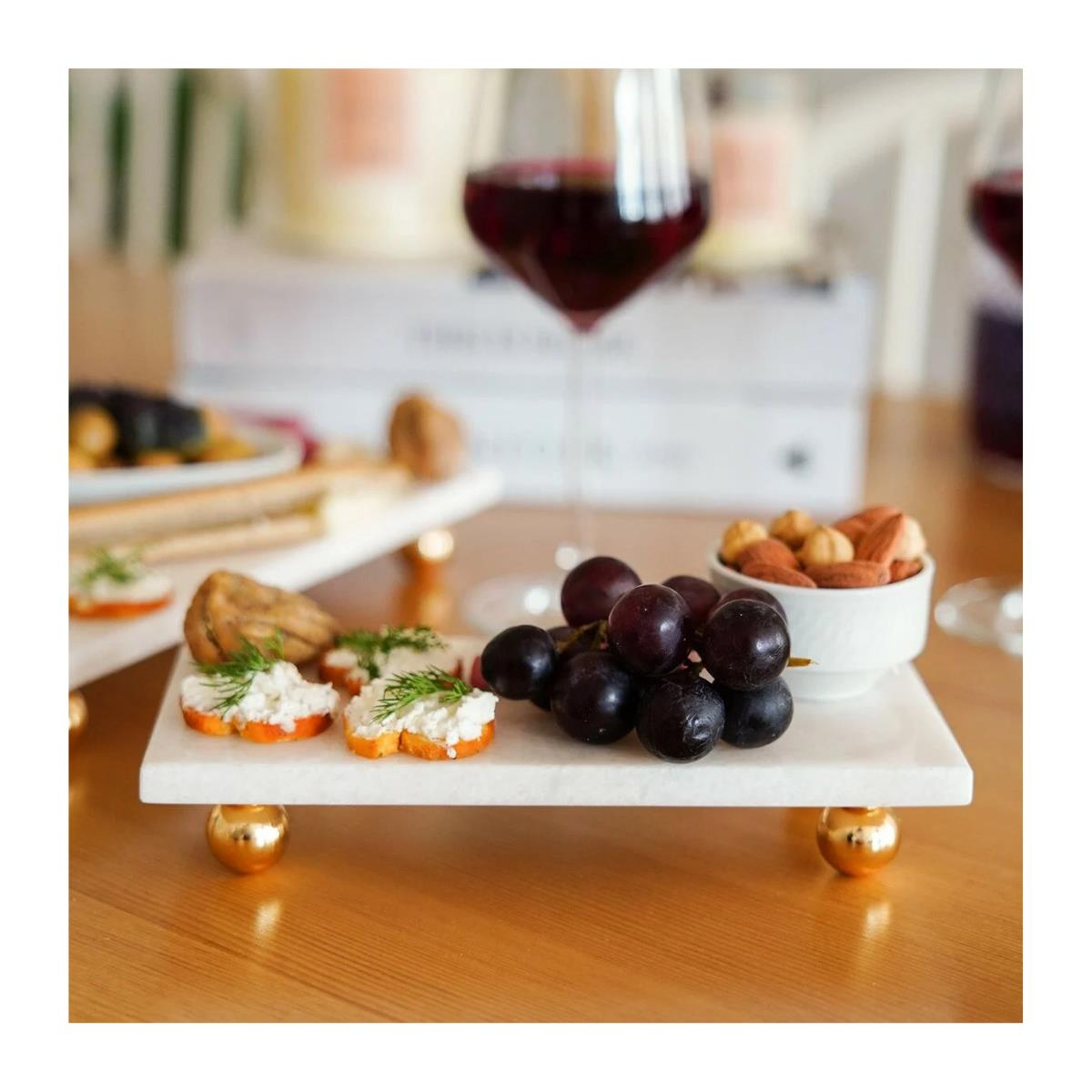 The Mia Marbre Mermer Boncuk Ayaklı Servis 20 x 10 cm Beyaz