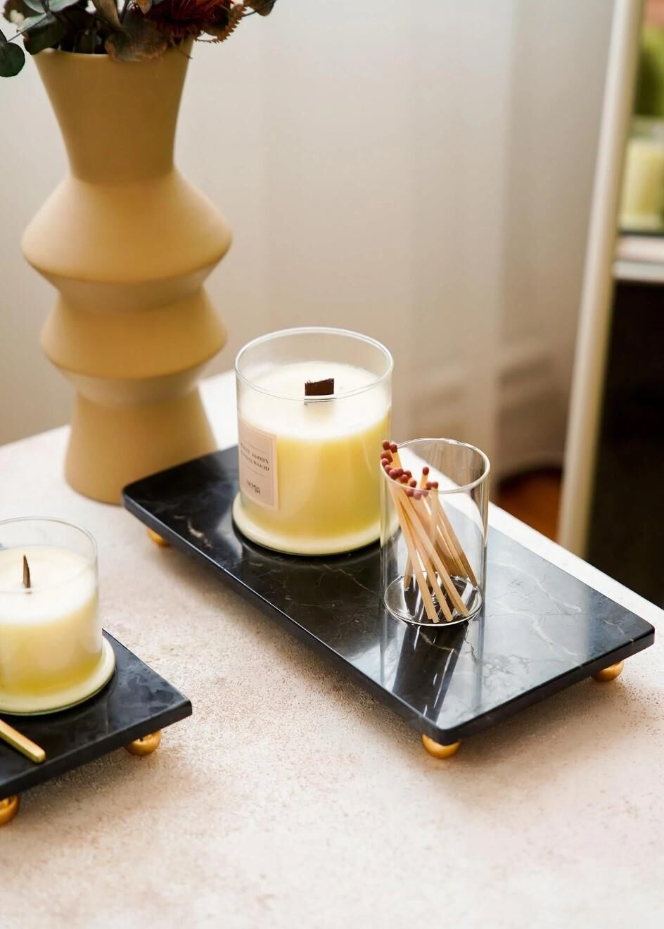 The Mia Marbre Mermer Boncuk Ayaklı Servis 30x15 Cm Siyah