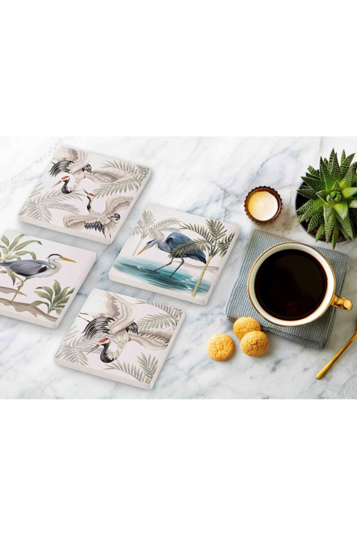 The Mia Taş Bardak Altlığı Bird 4'lü Seti