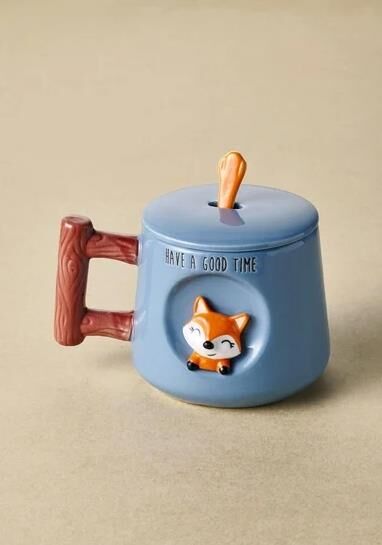 The Mia Tilki Kapaklı ve Kaşıklı Kupa 370 ml
