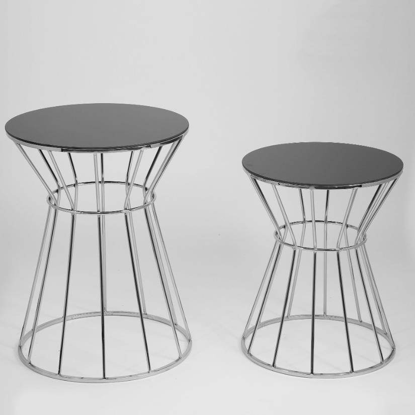 Vitale 2'li Siyah Camlı Halkalı Krom Sehpa Takım
