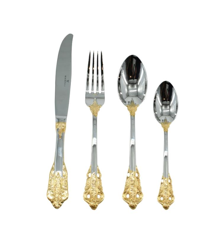 Wanelli 11251 Lora Dek. Altın 84 Parça Çatal Kaşık Bıçak Takımı