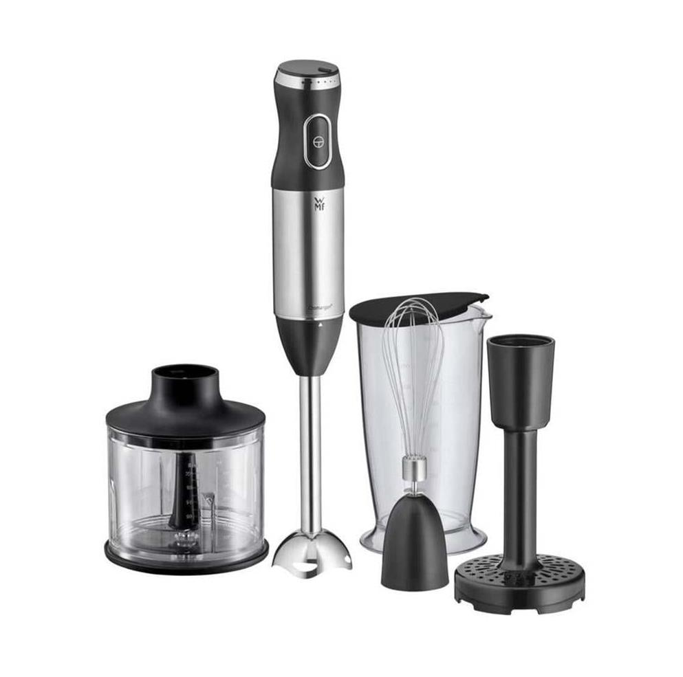 WMF Kult X el blenderi seti ile mutfak ilhamınızın ve yaratıcılığınızın sınırı yoktur. Güçlü 600 watt'lık blender, tek bir düğmeye basarak çok çeşitli malzemeleri lezzetli soslar, çorbalar, smoothie'ler, pesto, guacemole ve diğer birçok lezzet bombasına saniyeler içinde dönüştürür. Bu set daha fazlasını da yapabilir: Çırpma aparatı krema, yumurta akı ve hafif hamur hazırlamak için idealdir, blender aparatı kremalı püreler yaratır veya bebek mamasını küçükler için mükemmel kıvama getirir. Akıllı 4'ü 1 arada eksiksiz paket, pratik ve sağlam 700 ml'lik bir karıştırma kabı ile tamamlanır. El blenderinin kullanımı çok kolay ve güvenlidir, ele ergonomik olarak oturur ve yüksek kaliteli paslanmaz çelik bıçaklara sahip WMF 2+2 bıçak teknolojisi sayesinde mutfağınızda daha fazla çeşitlilik için her gün en iyi karıştırma sonuçlarını sunar. Ürünler zarif Cromargan® muhafazaları ve yüksek kaliteli, siyah plastik materyalleri ile mükemmel görünür.