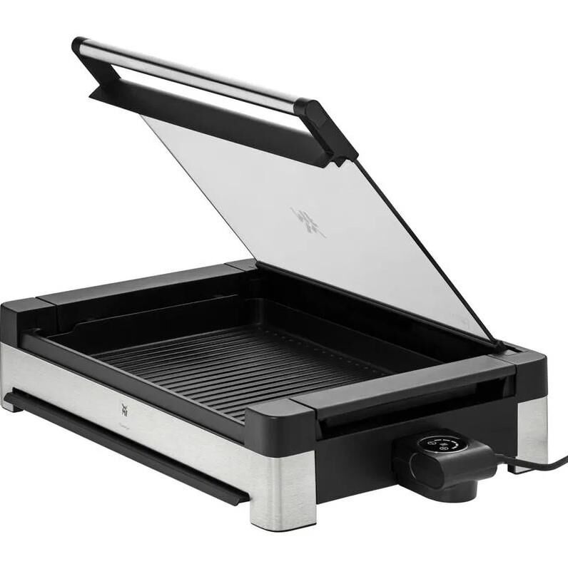 WMF Lono Masa Üstü Izgara ile evde ızgara deneyiminizi en üst seviyeye taşıyın. Yüksek kaliteli Cromargan® paslanmaz çelik 18/10’dan üretilen ısı yalıtımlı kasa, ısıya dayanıklı cam kapakla bu özel tasarımda bir araya geldi. Cam kapak pişme durumunu kolayca takip etmenizi sağlarken aynı zamanda ısıyı içeride tutarak hem enerji tasarrufu hem de eşit pişirilmiş sonuçlar elde etmenizi sağlar. 90 derecede kilitlenebilme özelliğiyle pişirdiğiniz yiyecekleri rahatça çevirebilir, kontrol edebilirsiniz. Güvenlik anahtarı makinenin sadece damlama tepsisi yerindeyken çalışmasına izin vererek güvenliğinizi sağlar. Kapaklı tasarım kokuları azaltırken makinenin kolayca ayrılan parçalar pratik temizlik sunar. Cam kapak ve ızgara plakasını bulaşık makinesinde rahatça yıkayabilirsiniz.