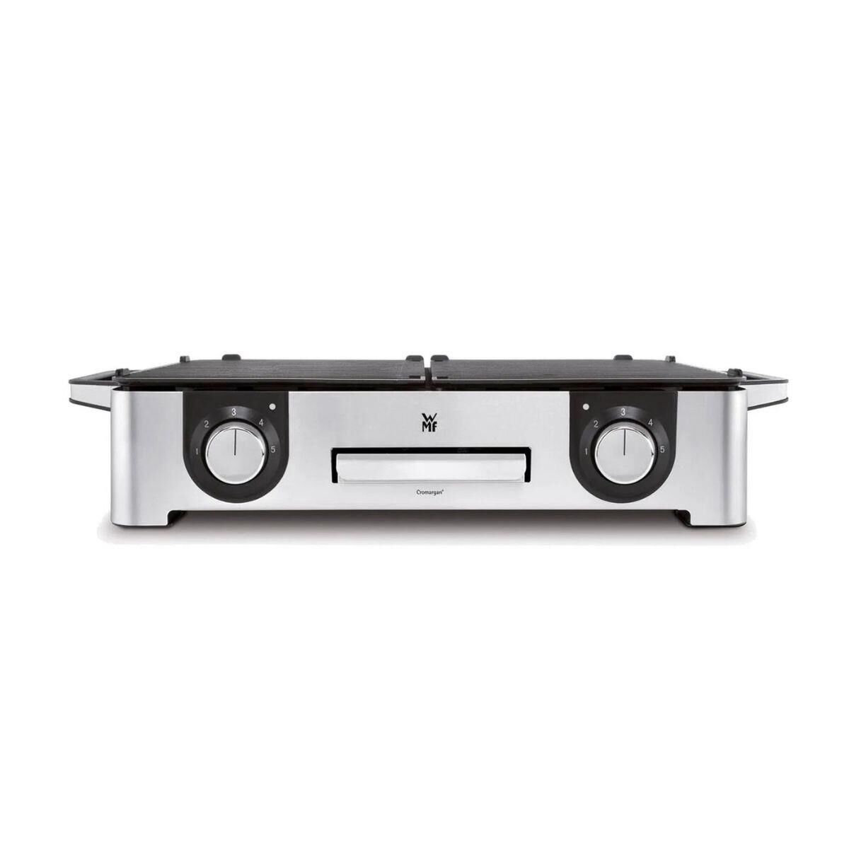 Cromargan® paslanmaz çelik kaplamalı WMF LONO Master Grill ile hem içeride hem de dışarıda ızgaranın keyfine varın. 28 x 50 cm ızgara alanı ile LONO Master Grill, her çeşit ızgaraya yemeğine uygun geniş bir pişirme alanı sunar. Sıcaklıkları LED ışıklara sahip ayrı kontrol mekanizmaları kullanılarak kontrol edilebilen iki ayrı tırtıklı ızgara plakası bulunur. LONO Master Grill’in ısıtma unsurları, içine yerleştirilmiş iki çok kalın alüminyum kaplama ızgara plakadan oluşur. LONO Master Grill ızgaralarınız için geniş alan sunmakla kalmaz, 2.400 watt güç çıkışı mükemmel ızgara sonucunu garanti eder. Çıkarılabilir yağ tepsisi ve iki ızgara plakası bulaşık makinesinde yıkanabilir. Bütün bunlara ek olarak dışarıda kullanım için çıkarılabilir rüzgar ve sıçrama koruyucusu bulunur.