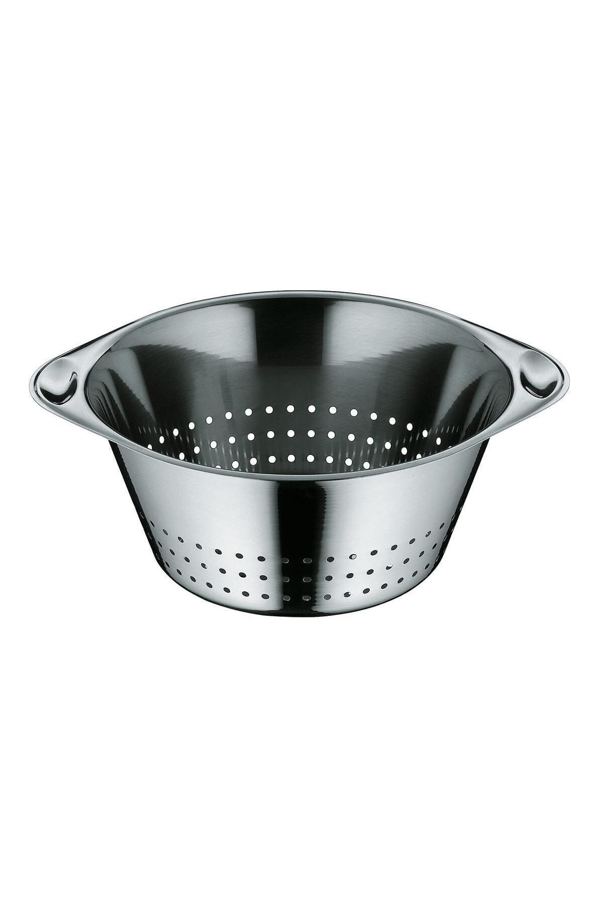 WMF Gourmet Süzgeç, mutfakta olmazsa olmaz bir yardımcıdır. Geniş delikli yapısı, meyve ve sebze yıkarken veya makarna süzerken güvenli ve hızlı kullanım sağlar. Yan kulplar, daha iyi kavrama için ergonomik şekil ile birlikte tutuş kolaylığı sağlar. Sıcak gıdaları süzerken artık parmaklarınız yanmayacak! Tepeden tırnağa bir tasarım harikası olan bu paslanmaz çelik süzgeç, yükseltilmiş sağlam tabana ve daha kolay ve güvenli tutuş için ergonomik yan saplara sahiptir. Yüksek kaliteli Cromargan® malzemeden üretilen bu süzgeç, büyüleyici parlak kaplamaya sahiptir ve kolay temizleme için bulaşık makinesinde yıkanabilir.
