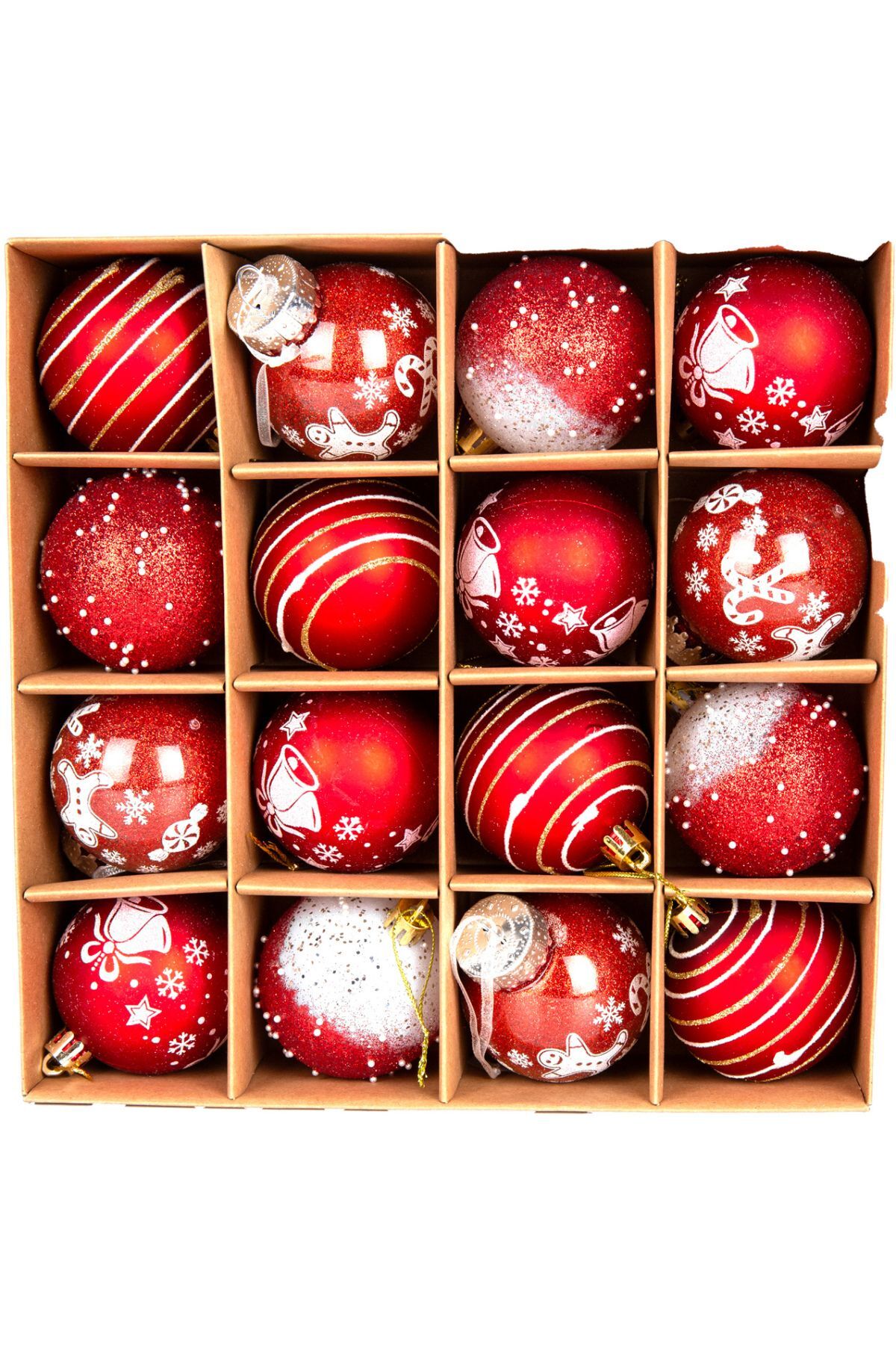 Yılbaşı Ağaç Süsü Yılbaşı Ağaç Topu 16 Lı Set Kırmızı 6cm