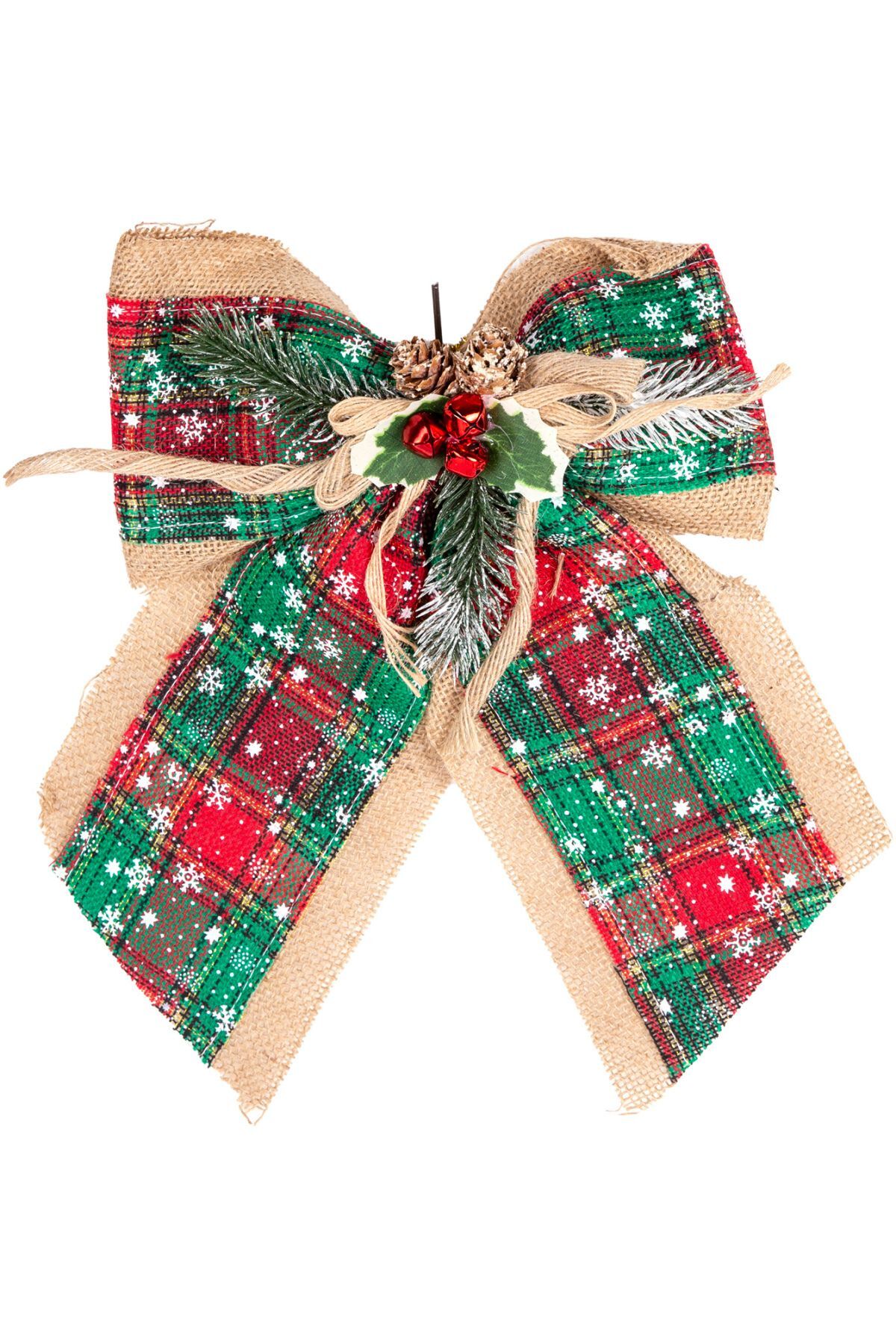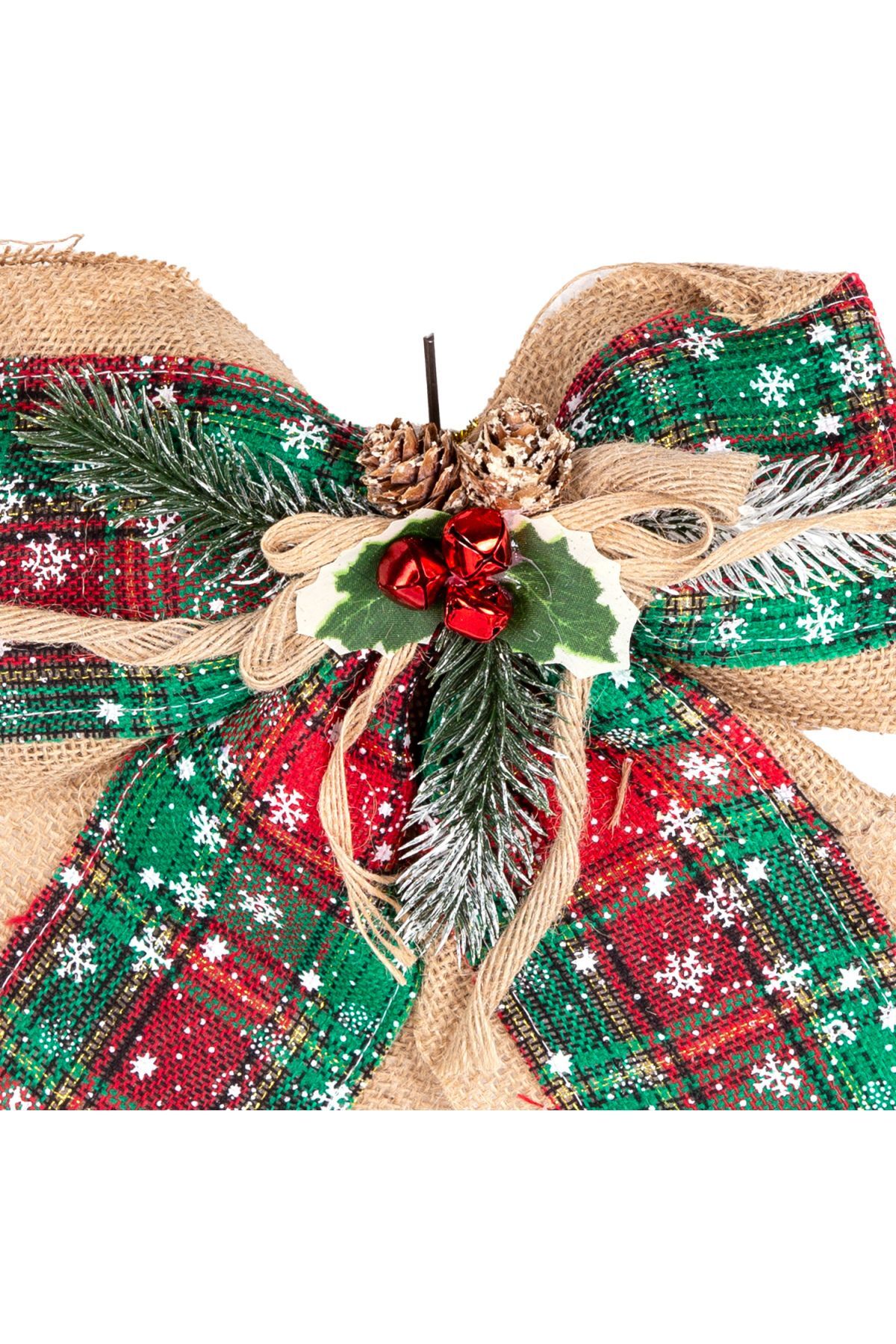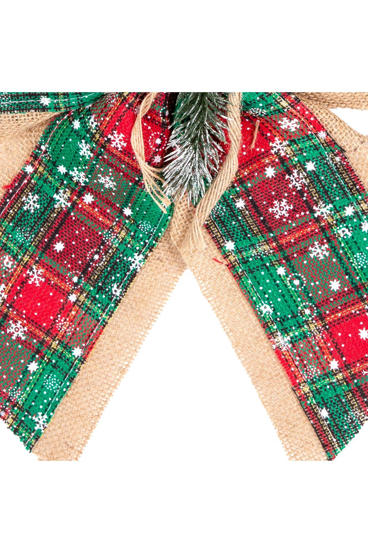 Yılbaşı Ağaç Süsü Yılbaşı Dekorlu Fiyonk Ekoseli Yeşil 30x21 Cm