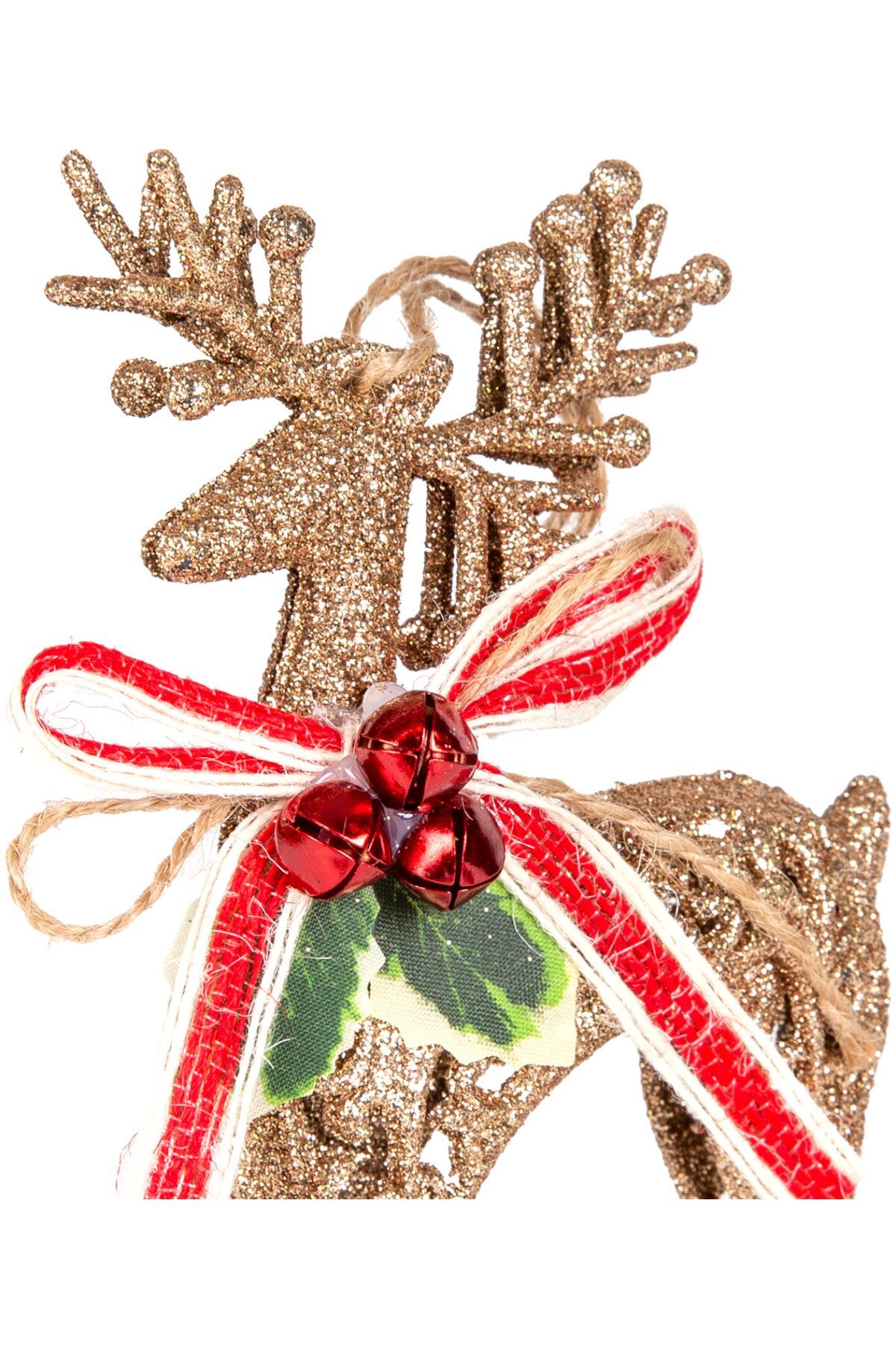 Yılbaşı Ağaç Süsü Yılbaşı Dekorlu Simli Geyik Gold 8x16 cm