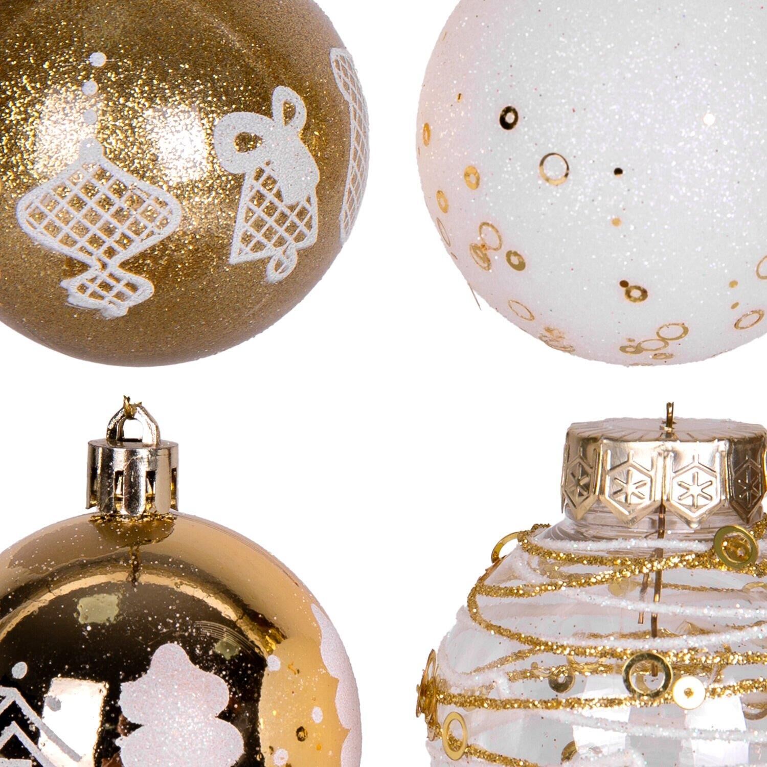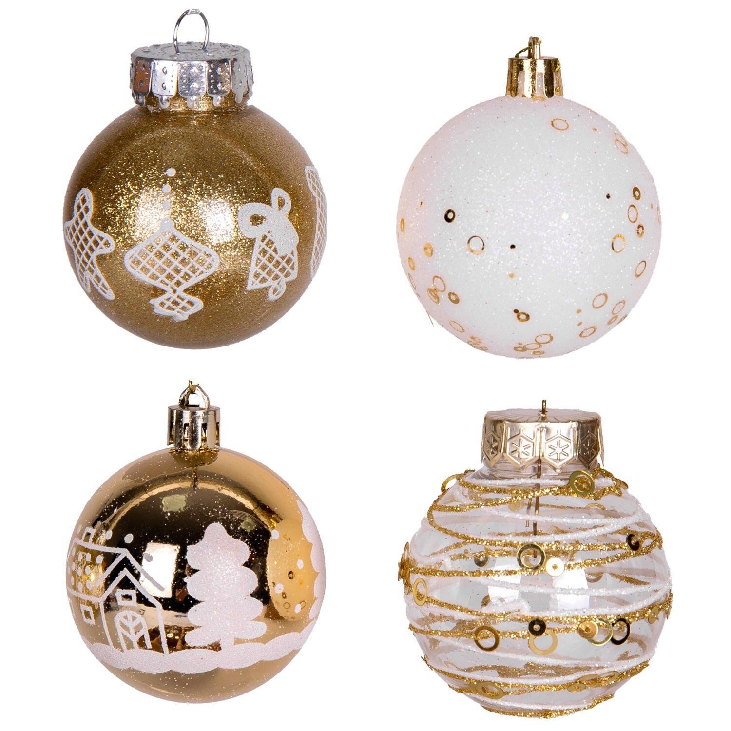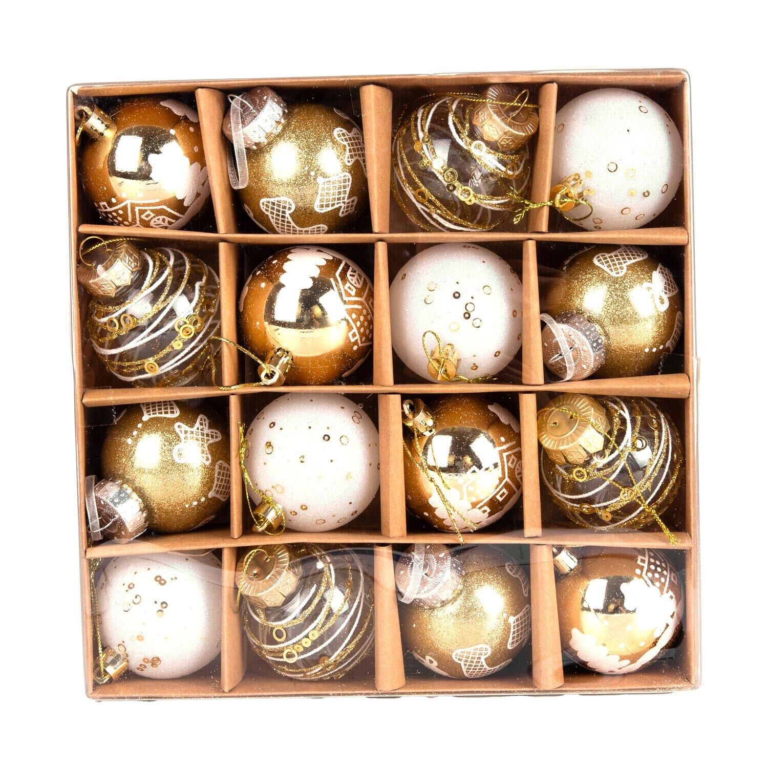 Yılbaşı Ağaç Süsü Yılbaşı Toplu 16 lı Set Gold Beyaz 6 cm