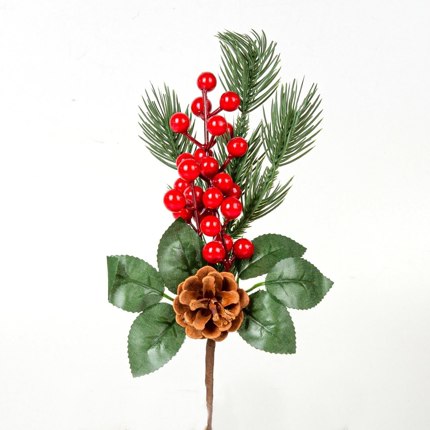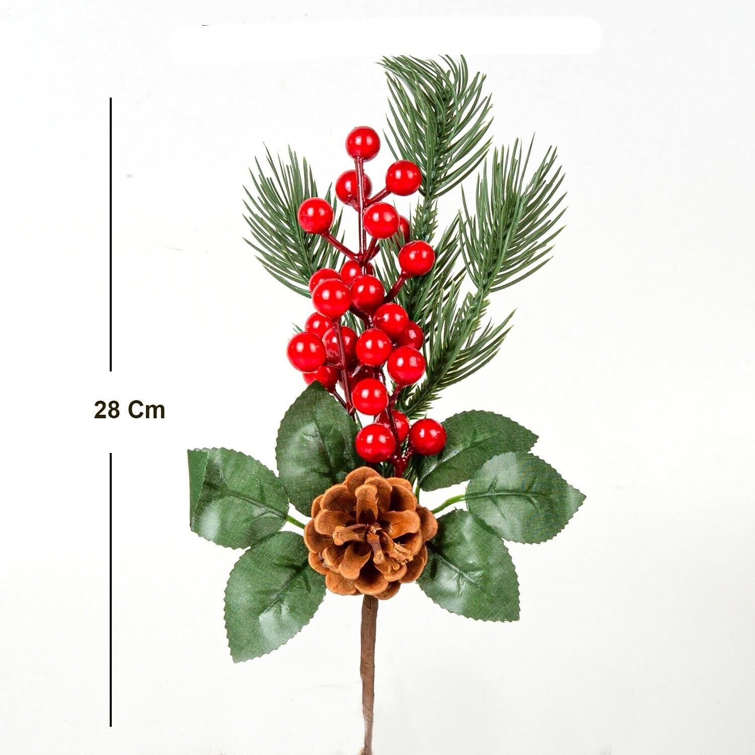 Yılbaşı Çiçek Pike Berry Kozalak Dekorlu Kırmızı-Yeşil