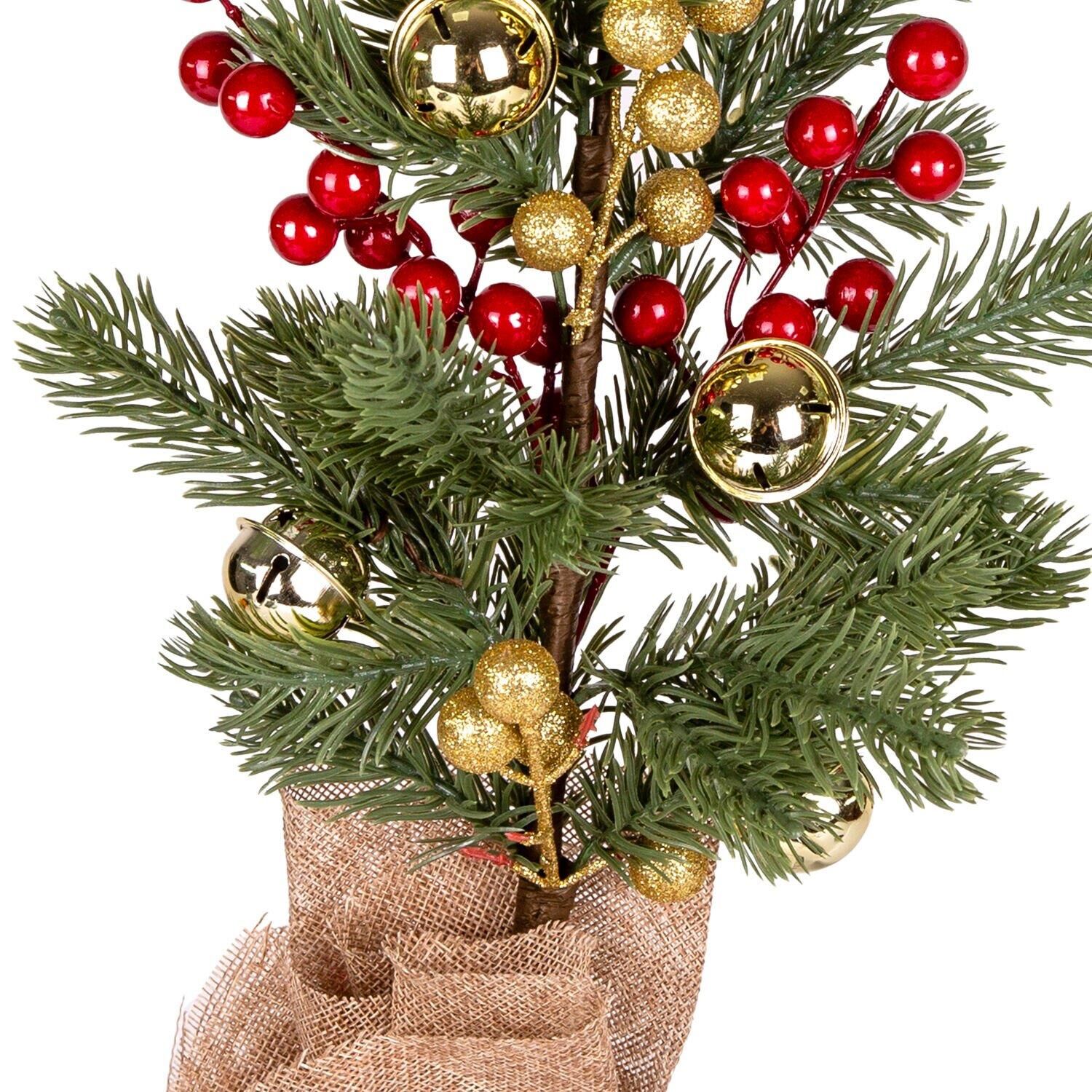 Yılbaşı Süsü Masa Çamı Yılbaşı Çıngıraklı Gold Berryli Kırmızı Gold 14x38 Cm.