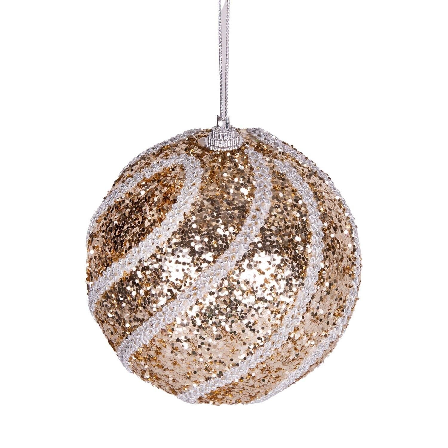 Yılbaşı Topu Pullu Beyaz Simli Dantel Şeritli 2 li Paket Şampanya 9 cm