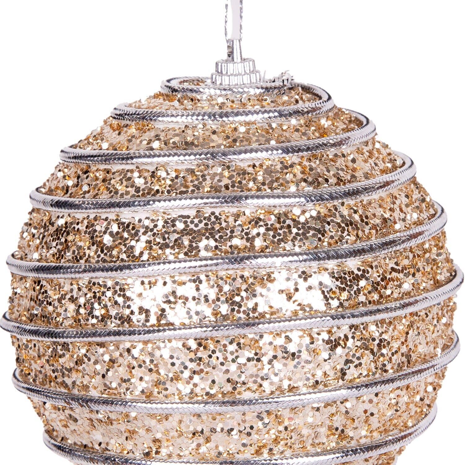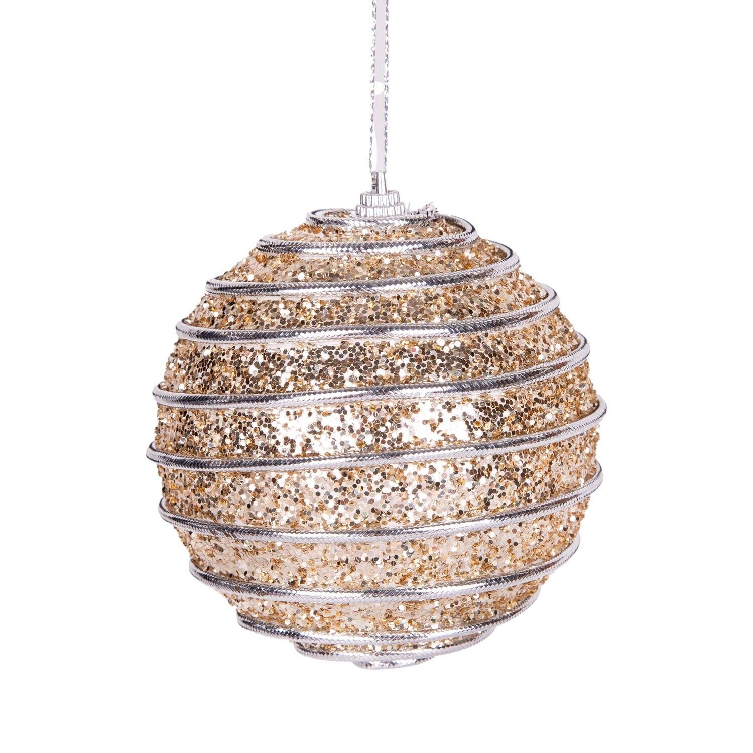 Yılbaşı Topu Pullu Gümüş Şerit İp Desenli 2 li Paket Şampanya 9 cm