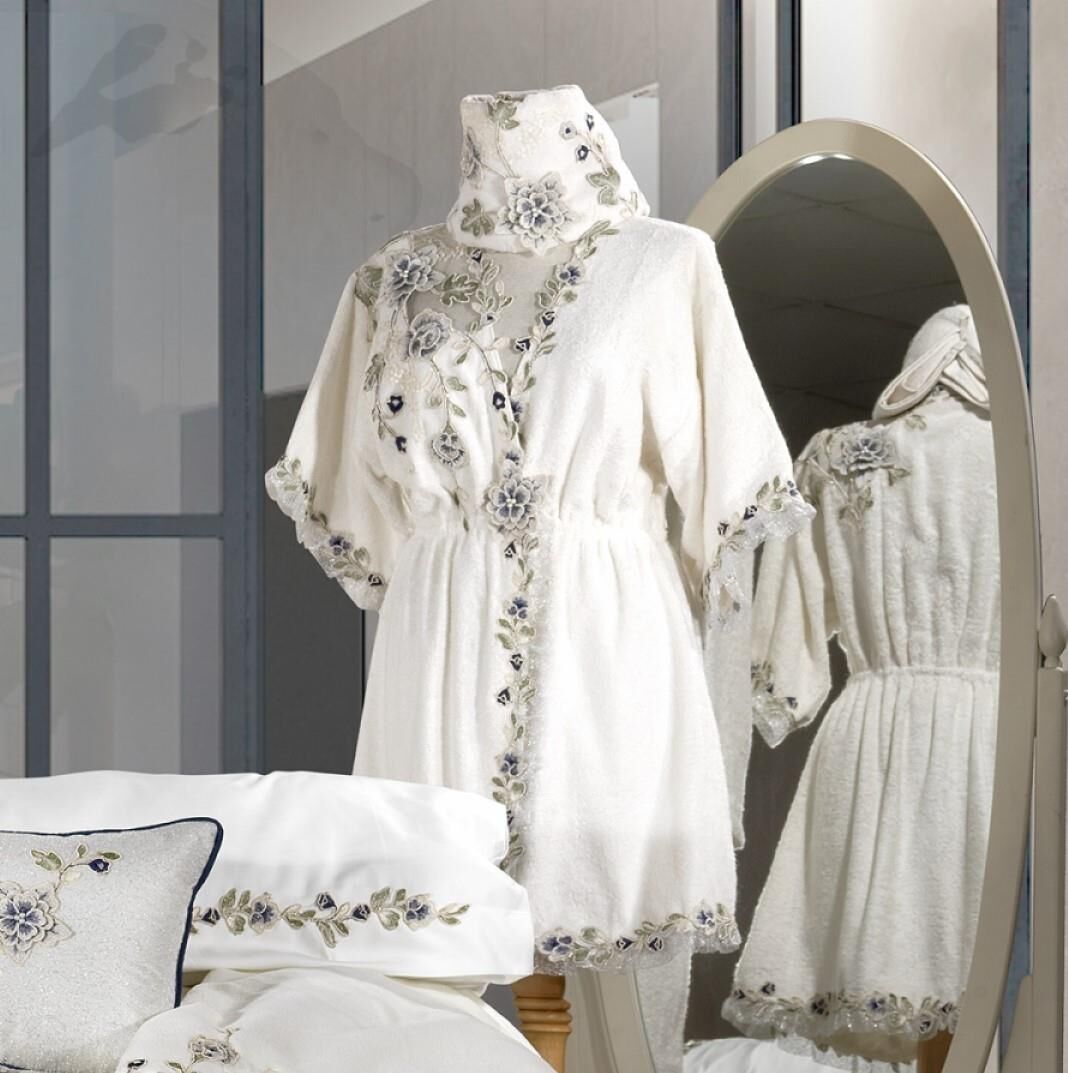 Zebra Casa Azur Balayı Bornozu Krem/Lacıvert