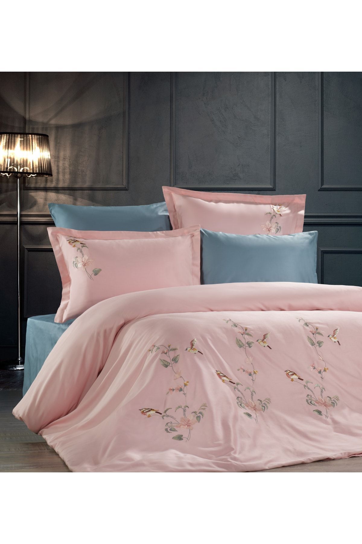 Zebra Casa Fonte Nevresim Takımı Nakışlı Çift Kişilik Pudra Petrol