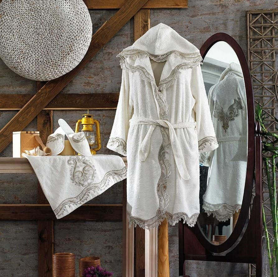Zebra Casa Marakesh Balayı Bornoz Kapışonlu Krem