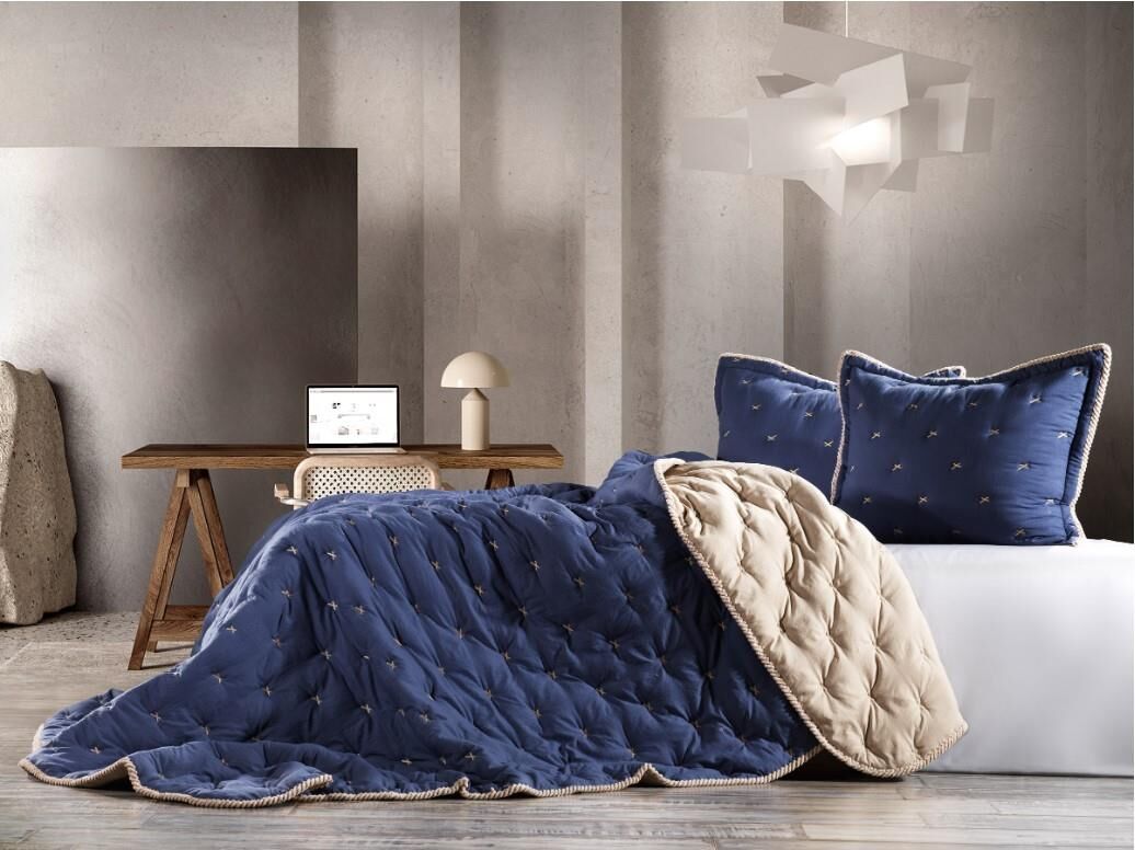 Zebra Casa Tender Yatak Örtüsü Çift Kişilik İndigo