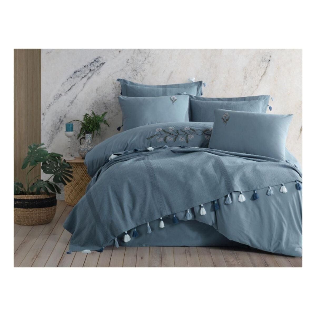 Zebra Casa Toscana Nakışlı Pike Seti İndigo Standart