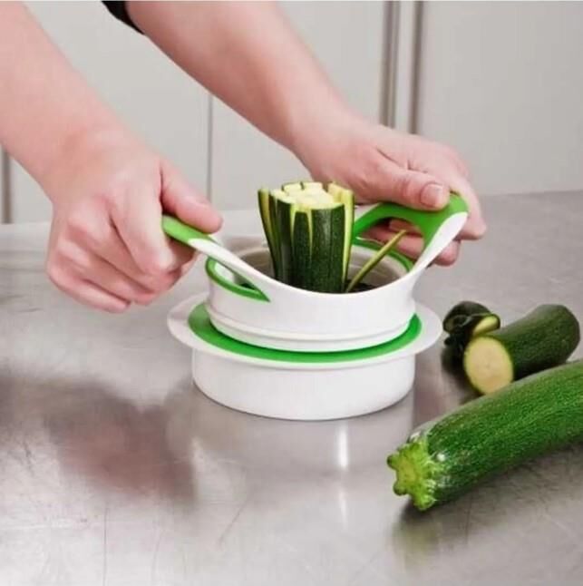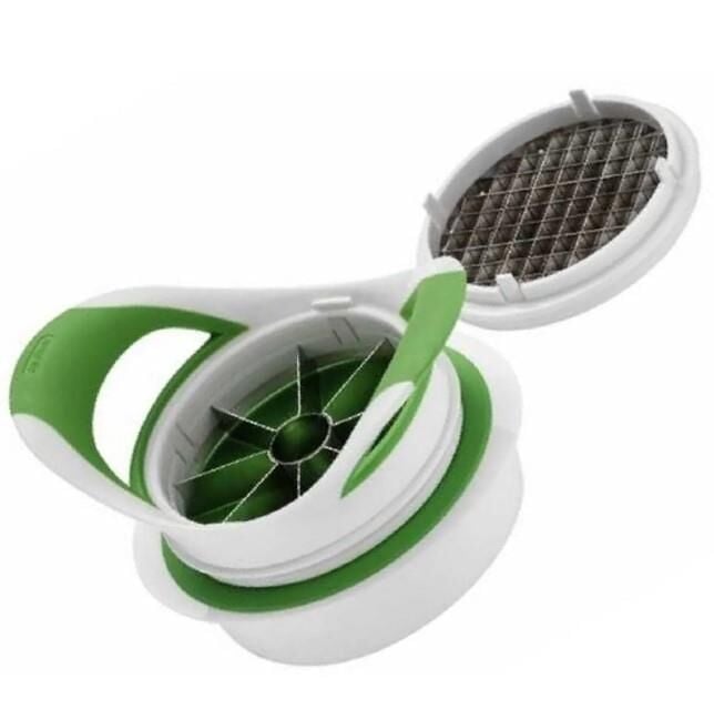 Elma ve sebze dilimleyici ile elma ve sebzelerinizi hem parçalara bölebilir hemde çekirdeğin bulunduğu kısmı çıkartabilirsiniz.